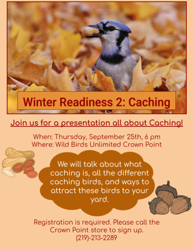Join us as we get ready for Winter! David will be doing a two-part series presentation on Winter Readiness! Our Second topic is Caching; learn about what it is, the birds who cache seeds, and ways you can attract these birds to your yard. All ages are welcomed, bring your friends, family, etc.!