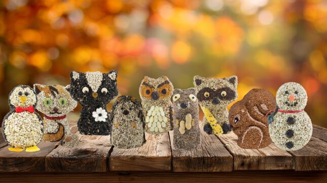 Honestly, could they be more adorable? Available exclusively at Wild Birds Unlimited, we offer several fun Seed Cylinder characters, including Sugar & Honey the Cat & Mouse, Blossom the Skunk, Buttons the Snowman, and more! Each is a mix of seeds, nuts and fruit and a wonderful addition to any yard.
